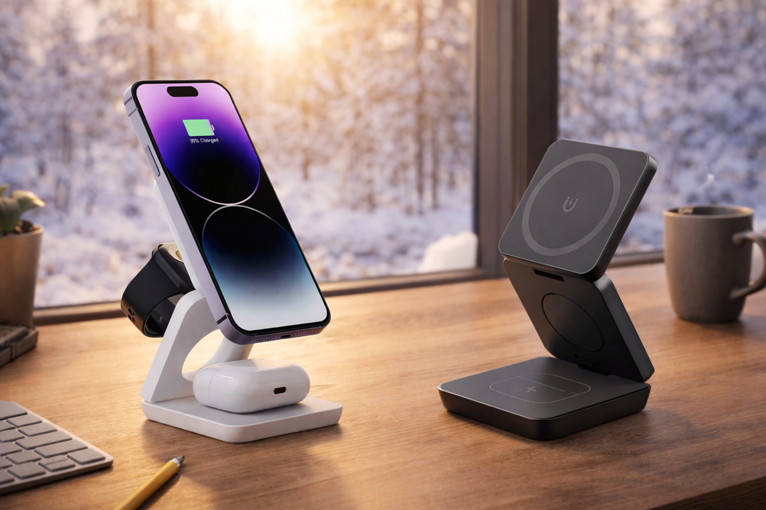 Tolles Produkt! Minimalistisch und durchdacht – es passt wirklich in jede Tasche und macht den Alltag einfacher. Besonders im Café oder am Schreibtisch war ich beeindruckt, wie ordentlich alles bleibt. Die Ladeleistung reicht für mein iPhone 14 und die Apple Watch völlig aus. Das optionale Transporttäschchen wäre noch praktischer, das hätte ich vielleicht noch dazukaufen sollen.